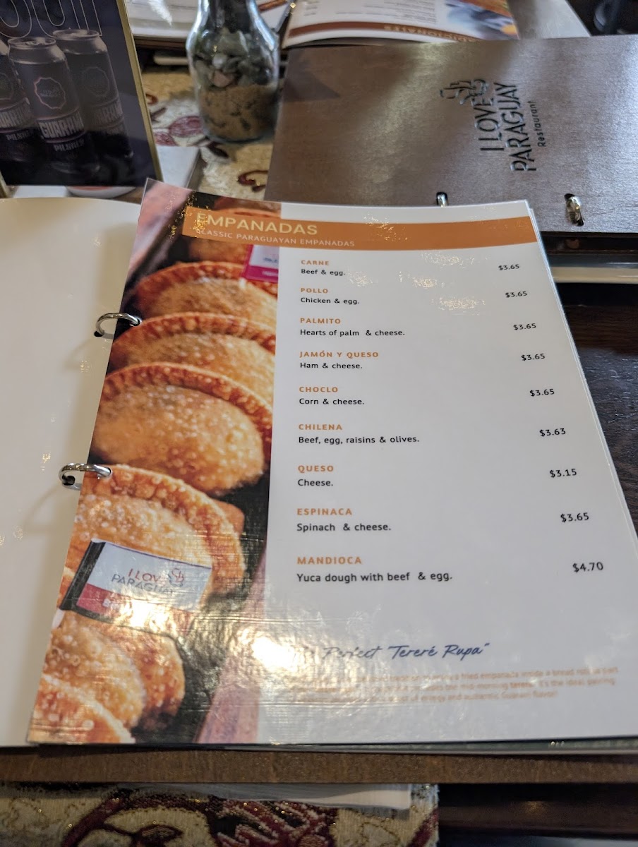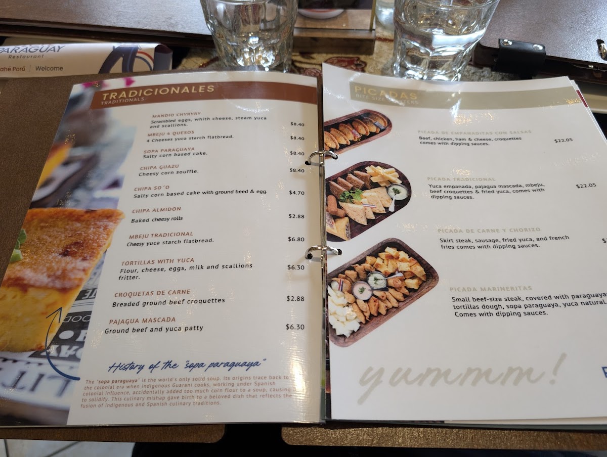 1 yuca empanada, 1 Pajagua mascada, 1 mbeju, 2 beef croquetas & fried yuca
